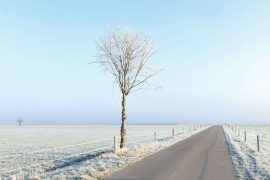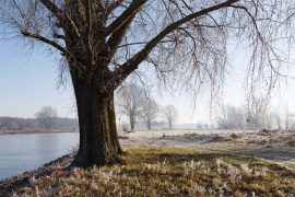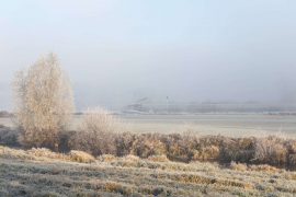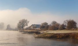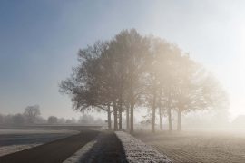 Het zou een mooie dag worden en omdat ik nog steeds een dagje wilde gaan fotograferen met mijn oude analoge Voigtländer Bessa, met een zwart wit filmpje er in, ging ik op pad. Bestemming de rivier de IJssel. Vanwege het licht besloot ik van zuid naar noord te gaan, beginnend in Zutphen, met de auto zo dicht mogelijk langs de rivier. Het had behoorlijk gevroren, maar vanaf huis scheen een bleke zon en dat leek veelbelovend. Vlak voor Voorst belandde ik in de mist en daar ging mijn project van die dag ook bijna de mist in. Van de nood een deugd makend, schoot ik beelden met mijn vertrouwde digitale camera. Soms in de mist, soms met wat zon en later met volle zon. Het leverde mooie beelden op. Je kunt de kou bijna voelen, schreef iemand op Facebook, waar mijn foto’s ook te zien waren.