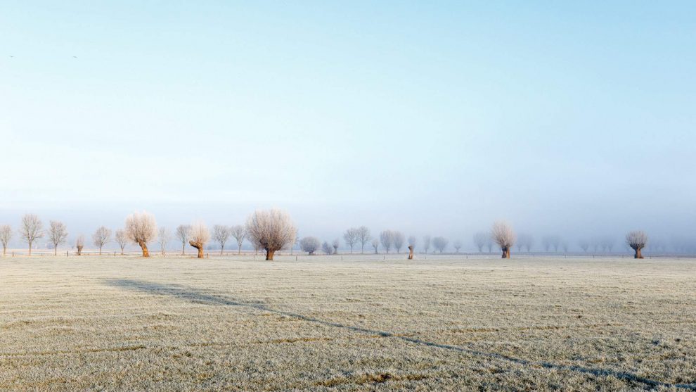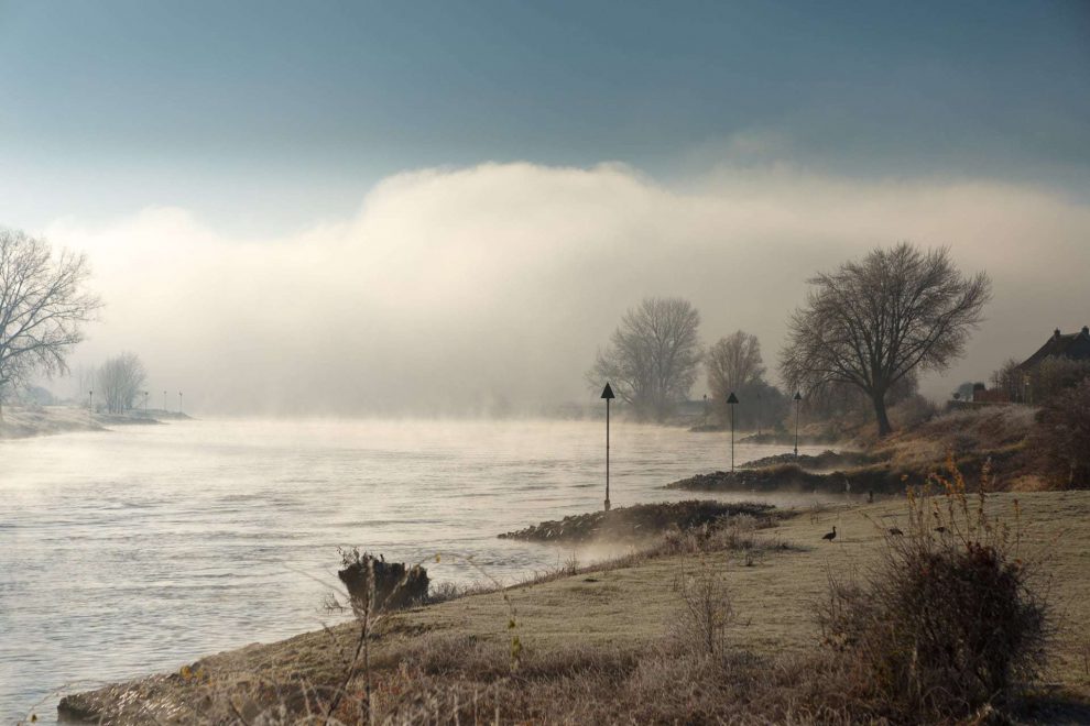 Het zou een mooie dag worden en omdat ik nog steeds een dagje wilde gaan fotograferen met mijn oude analoge Voigtländer Bessa, met een zwart wit filmpje er in, ging ik op pad. Bestemming de rivier de IJssel. Vanwege het licht besloot ik van zuid naar noord te gaan, beginnend in Zutphen, met de auto zo dicht mogelijk langs de rivier. Het had behoorlijk gevroren, maar vanaf huis scheen een bleke zon en dat leek veelbelovend. Vlak voor Voorst belandde ik in de mist en daar ging mijn project van die dag ook bijna de mist in. Van de nood een deugd makend, schoot ik beelden met mijn vertrouwde digitale camera. Soms in de mist, soms met wat zon en later met volle zon. Het leverde mooie beelden op. Je kunt de kou bijna voelen, schreef iemand op Facebook, waar mijn foto’s ook te zien waren.
